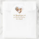 Célébrez votre journée spéciale avec ces stickers de faveur de mariage de chats personnalisés mignons. Personnalisez simplement avec le nom de votre chat et sa photo. Cette conception élégante comprend une police de caractères couleur or qui dit "Merci pour célébrer mes humains! amour, ___". Ce design comprend également deux coeurs dorés et un endroit en forme de coeur où vous pouvez ajouter une photo de votre chat.