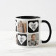 Photo personnalisée en noir et blanc Je t'aime tasse avec les coeurs! Créez un cadeau unique pour une personne spéciale dans votre vie en personnalisant cette jolie photo personnalisée Je vous aime tasse avec cinq photos et cinq coeurs avec le texte que je vous aime à l'intérieur. Cette mignonne tasse est parfaite pour toute occasion, des anniversaires aux fêtes. Personnalisez facilement cette tasse avec des photos de moments précieux, des photos de famille, des animaux de compagnie et plus encore. Surprenez votre partenaire ou quelqu'un de spécial avec un beau cadeau photo personnalisé qui est sûr de mettre un sourire sur leur visage. Pour des demandes personnalisées, veuillez nous contacter via Zazzle conversation.