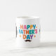 Faites de la Fête des pères une spécialité avec cette tasse "Fête des pères heureuse" personnalisée! Doté d'un design multicolore vibrant avec des lettres mousseuses, des étoiles amusantes et une moustache élégante, ce mug comprend également deux taches photo personnalisables, parfait pour ajouter vos souvenirs préférés avec papa. Que ce soit d’un fils, d’une fille ou de toute la famille, cette tasse unique est un cadeau charmant et pratique que votre père utilisera et aimera tous les jours.