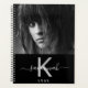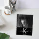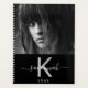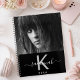 Un arrière - plan noir chic. Personnalisez et ajoutez votre propre photo, un nom, une lettre monogramme et une année. Le nom est écrit en blanc avec un grand script de style à la main moderne avec des swashes. La lettre monogramme en gris. Parfait pour l'école, le travail ou l'organisation de votre vie personnelle/familiale. Pour que les swashes ne suppriment que le nom de l'échantillon, laissez les espaces ou les émoticônes devant et après le nom