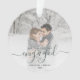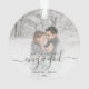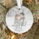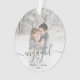 Commémorez votre fiançailles avec ce magnifique ornement de gardien moderne. Le texte vert de pin foncé dit "Notre premier Noël engagé", avec le mot "engagé" dans un élégant script d'écriture manuscrite avec des fleuris avant et après. Remplacez l'exemple d'image par votre photo préférée, et ajoutez vos noms et l'année. Un filtre dégradé blanc permet de faire apparaître le texte.