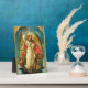 Plaque de table décorative avec chevalet : une ancienne représentation orthodoxe de l'archange Michael tuant Satan comme dragon.
