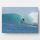 Plaque montrée dans une taille 5x7 avec une photo d'un surfeur surfant sur la vague. Customisez cet objet ou achetez tel quel. Image stock
