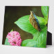 Photo d'un papillon Morpho Bleu sur une feuille d'un plante Penta.