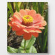 Cette magnifique plaque comporte une photo détaillée d'une jolie fleur de Zinnia orange. La photographie a été prise en utilisant la macro photographie et montre la délicate beauté des pétales oranges et centre jaune de cette belle fleur.