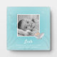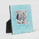 Sweet Shark Baby Easel Plaque a un arrière - plan aquatique aqua avec adorable requin et bébé. Ajoutez des photos et des informations de naissance pour une touche personnelle.