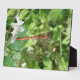 Cette magnifique plaque est ornée d'une photographie d'une belle libellule de fléchette commune (Sympetrum striolatum). Cette espèce est principalement brune avec des taches rouges sur son corps et de beaux grands yeux bruns. La photo a été prise d'en haut en utilisant la macro photographie pour un résultat étonnamment détaillé. Vous pouvez clairement voir les deux paires d'ailes et tous leurs motifs complexes.
