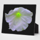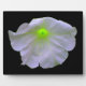 Cette magnifique plaque comporte une photo d'une fleur de pétunia qui a été manipulée pour rendre le centre de la fleur vert brillant. Les pétales extérieurs sont blancs et les veines qui sortent du centre de la fleur brillent aussi de vert. La fleur est sur un arrière - plan noir pour la faire ressortir.