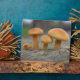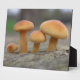 Cette magnifique plaque présente une photo magnifiquement détaillée de 4 petits tabourets jaunes qui émergent d'une bille dans un parc. L'arrière - plan est floue et les champignons sont photographiés au niveau, donc vous voyez le monde de leur point de vue.