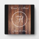 Monogramme personnalisable Nom, Initiale et Date en texte blanc - sur un arrière - plan à l'allure bois. Simple, et charmant !