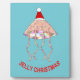 Cette magnifique plaque est ornée d'une méduse scintillante illuminée comme des lumières de Noël. Le dessus de la cloche est étincelant et le dessous ressemble à des lampes clignotantes, même les tentacules sont lumineux et colorés. La méduse porte un chapeau de Père Noël rouge et blanc et est prête pour un Noël gelé.