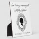 Belle plaque de mémoire pour votre maison ou au bord de la tombe. Vous pouvez remplacer l'image de silhouette par votre propre photo ou par une silhouette de votre bien-aimé. Si vous avez des questions ou avez besoin d'aide, contactez-nous et je serai heureux de vous aider.