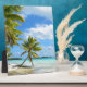 Plaque avec palmier suspendu sur une plage de sable blanc d'une île tropicale dans l'océan Pacifique appartenant à l'archipel de Tahiti Polynésie française.