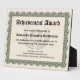 La magnifique plaque de récompense de réalisations fait un excellent cadeau d'entreprise, ou trophée pour récompenser un étudiant, un employé du mois, de l'année, le service à la clientèle, un jalon de vente ou une autre personne pour un travail bien fait. Jolie rosette vintage bordure d'art en bois avec style classique et arrière - plan certificat beige avec un emblème en feuille de laurier dans l'arrière - plan. Vieux texte anglais customisé avec votre nom, école, organisation d'entreprise et autre texte.