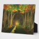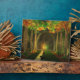 Une grande salle creusée dans le flanc de la colline, et le long de chaque mur une allée d'arbres. Au fond, une baie peu profonde avec un toit en forme d'arche, et un petit ruisseau qui ruisselle le long du mur comme un rideau fin devant elle. Dans la baie une table et deux récipients, qui brillent d'une lumière dorée et verte. Le mélange des deux lumières est comme le soleil d'été qui brille à travers les jeunes arbres. Les arbres aussi brillent, chaque feuille ourlée de lumière, verte, dorée et rouge.
