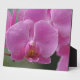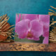 Cette plaque brillante de haute qualité présente de belles orchidées roses grillées de gouttes de pluie.