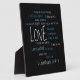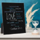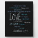 Cette belle plaque comporte des lignes de 1 Corinthiens 13:4 "L'amour est patient, l'amour est gentil..." placé au hasard sur la plaque.