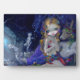 Peut-être mon tableau préféré que j'ai jamais fait - "Un rêve de nuit d'été" - certainement l'un de mes plus grands et plus complexes. Inspiré bien sûr par "Un rêve de nuit d'été" de Shakespeare - une de mes pièces préférées ! La reine Titania est la vedette la plus importante, son roi jaloux Oberon a convaincu Puck (représenté ici comme une figure classique de type Cupidon basée un peu sur mon neveu Fox) d'utiliser une potion d'amour faite de violettes magiques pour faire tomber Titania en amour avec l'acteur Nick Bottom (qui vient d'être donné par magie la tête d'un âne). Suivez tout ça ? Toutes les autres féeries sont dans la scène de la Nuit de cet été - une procession menant au crépuscule tandis que les féeries se transforment en papillons de nuit lumineux. On peut voir sept sirènes et un dauphin classique comme un clin d'oeil à toute la référence Oberon/dauphin/sirène. Beaucoup de références classiques cachées dans cette pièce, en fait ! Les lumières brillantes magiques ont presque l'air d'être brillantes, mais non - c'est une pièce peinte à la main sans effets d'éclairage, hehe, a fait la façon à l'ancienne - une peinture acrylique originale sur bois.