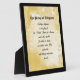 Le serment d'allégeance est fixé contre un arrière - plan de papier parchemin avec une bordure noire. VEUILLEZ NOTER : Ce design est le plus approprié sur la plaque de 8" x 10". VEUILLEZ NOTER QUE la plaque sera exacte, COMME ELLE APPARAÎT À L'ÉCRAN. Si vous choisissez une plaque de 8 po X 10 po de plus petite taille, il peut y avoir des bords noirs plus gros ou plus petits sur le dessus, le bas ou les côtés, il ne sera pas aussi centré que la plaque de 8 po x 10 po.