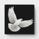 Design d'art original d'une colombe blanche volante, symbole de paix, par l'artiste Carolyn McFann du Studio Two Purring Cats sur une plaque de qualité personnalisable.