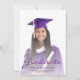 Faire-part moderne de graduation avec une photo verticale personnalisée. Le mot "Graduate" apparaît dans le script violet, avec le nom du diplômé, l'école et l'année de graduation ci-dessous dans la police sans serif. Remplacez facilement l'image de l'échantillon par la photo de votre diplômé. Un écran de dégradé blanc permet de s'assurer que le texte s'affiche. L'inverse est violet solide. Idéal pour obtenir un diplôme d'études secondaires ou collégiales.