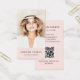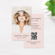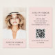 Cartes de visite photo modernes, verticaux, rose pâle, avec votre nom, titre et photo sur le devant. Champs de modèle personnalisables pour le nom, le titre, les coordonnées et le code QR au verso. Vous pouvez modifier les couleurs des arrière - plans et des polices, déplacer et redimensionner les éléments à l'aide de l'outil de conception. Suivez-nous sur Facebook : @businessstationery pour plus de produits, nouvelles, ventes et plus encore.