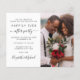 Annonce de réception de mariage moderne et économique pour enregistrer la date, avec votre photo et "Happily Ever After Party" dans un mélange de typographie simple et d'écriture stylisée avec fioritures. Personnalisez les détails de votre réception pour enregistrer la date et ajoutez vos noms dans une écriture semblable à une signature.