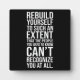 Renforcez votre motivation à poursuivre votre forme physique avec notre Plaque "Rebuild Yourself". Cette pièce de décoration intérieure inspirante est faite de matériel de qualité, parfait pour les amateurs de gym qui cherchent à insuffler une touche d'inspiration dans leur parcours de remise en forme. Sa taille compacte en fait un excellent complément à une salle de sport ou un espace de remise en forme. Grâce à sa puissante déclaration, cette plaque encourage un cheminement continu d'amélioration de soi. Un rappel parfait que se reconstruire soi-même est un voyage, pas une destination.