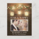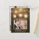 Photo Rustic Mason Jar Merci Cartes postales - customisez à une photo de votre propre. Le design comprend des lumières et des jarres en maçon éclairées accrochées à une branche avec un arrière - plan en bois de grange et un dos décoratif.