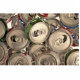 Boîtes en aluminium, réutilisées. Une grande texture remplie de couleurs.