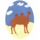 Caricature à bulles Art d'un chameau à bosse qui marche sur des dunes de sable dans le désert sous un ciel bleu moucheté de nuages. Créé avec du papier de construction et manipulé dans Photoshop par KLeighE de Hinterland Harmony’s Whimsical Cartoon Art ™