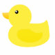 Adorable canard en caoutchouc jaune sur un arrière - plan bleu et bulles de savon. Conception parfaite pour votre chambre ou salle de bain.
