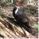 Le pivert de Pileated rend sérieux pour établir un tronçon décomposé de cèdre dans une ceinture verte au sud de Blaine, Washington.
