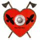 Montrez votre amour pour votre Saint-Valentin nordique/scandinave. Traversé des haches Viking derrière un bouclier rouge en forme de coeur. Deux simples symboles de corbeau apparaissent également sur le bouclier. Customisez en ajoutant votre propre texte sur le bouclier.