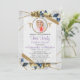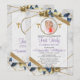 Invitation élégante moderne pour la première célébration de communion de votre fille. L'invitation est si belle avec une verdure avec un design feuille botanique avec un arrière - plan aquarelle. De plus, nous avons fait l'invitation avec personnalisation supplémentaire avec la photo de votre fille pour le rendre plus unique et spécial. Il suffit simplement de prendre une photo avec votre téléphone et de l'ajouter au cadre de perles moderne.