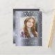 Une invitation à une fête d'anniversaire surprise. Modèle pour votre propre photo. A l'avant : Représentation de texte blanc : Shhh ! C'est une surprise. Le texte est écrit avec un script de style moderne écrit à la main. Texte : 21e anniversaire (ou tout âge). Décoré avec un faux sprinkle de diamant. Faux argent foncé à l'arrière - plan métallique. Dos : arrière - plan métallique faux argent, quelques faux diamants et des lettres de couleur noire. Modèles pour un nom et les détails de la fête.