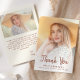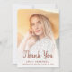 Carte de remerciement moderne de graduation avec une photo verticale personnalisée à l'avant et une photo horizontale à l'arrière. Les mots "Merci" apparaissent dans le script terre cuite, avec votre nom et année de graduation ci-dessous en sans serif font. Personnalisez l'envers avec un message de votre choix en terre cuite sans serif sur un arrière - plan beige, et ajoutez votre signature en écriture manuscrite. Remplacez facilement l'exemple d'images par vos propres photos. Un écran en dégradé blanc permet de s'assurer que le texte à l'avant de la carte pops. Idéal pour obtenir un diplôme d'études secondaires ou collégiales.
