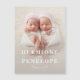 Photo jumeau moderne géométrique + faire-part de naissance typographique. La couleur Arrière - plan peut être modifiée.