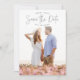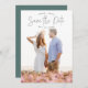 Cette photo élégante et minimale enregistrer la carte de date comporte une photo verticale à fond saigné avec vos noms, la date mariage et l'emplacement courbé par le haut. "Save the Date" apparaît en caractères manuscrits décontractés gris foncé. Personnalisez avec votre date et votre emplacement mariage, et ajoutez des détails supplémentaires, comme votre site Web mariage, au verso. En raison de la finesse du lettrage et de la nature minimaliste de ce design, nous recommandons ce style pour les photos verticales avec ample espace blanc au sommet.