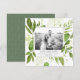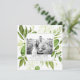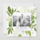 Notre pré sauvage enregistrer la carte de date dans un format carré unique encadre votre photo fiançailles préférée avec une bordure de verdure aquarelle peinte dans des tons luxuriants de vert printemps, d'olive et de fougère. Un choix moderne mais bio pour les mariages du printemps ou de l'été avec des feuilles verts frais dans la couleur de l'année 2017. Personnalisez avec vos noms, date mariage et emplacement en utilisant les champs fournis.