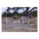 Double Take Zebras Nature Les photos et les cadeaux présentent une belle photographie de deux zèbres qui regardent tous deux le spectateur pris lors d'une pause snack par Kurt Keller avec un appareil photo de 35 mm pendant un safari africain au Botswana, en Afrique du Sud et au Zimbabwe. Chaque zèbre est unique porte son propre motif de rayures malgré la double prise. Quiconque aime les animaux africains, la faune et la flore, et tous les amateurs de zèbres apprécieront cette belle photo d'un deux zèbres debout dans la savane.