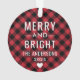 Photo ornament design pour les fêtes présente votre image préférée avec le texte de l'année en blanc (peut être customisé) avec le motif plaid de buffle rouge et noir sur le dos. Personnalisez le monogramme personnalisé "Joyeux et brillant" nom de famille et le texte de l'année sur le dos ou supprimer. Conseil photo : recadrez la photo au format carré avant de la télécharger sur le modèle design. Crédit photo : Two Fish Photography www.twofishphoto.com