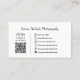Faites une impression durable avec ce carte de visite élégant et moderne conçu spécialement pour les photographes. Doté d'une typographie propre, d'une mise en page élégante et d'un code QR scannable qui relie directement votre portefeuille ou Instagram, c'est la façon idéale de présenter votre travail en déplacement. Ces cartes de visite font partie d'une collection d'entreprises avec des éléments de coordination disponibles.