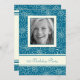 Photo personnalisée Invitations de fête du 21e anniversaire dans d'élégants motifs floraux turquoise et crème. Ajoutez votre photo et vos détails de fête pour une invitation unique et élégante à la fête d'anniversaire.