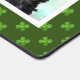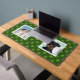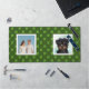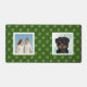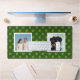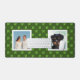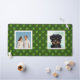 Photos personnalisées de famille et de chien avec feuilles jade sur arrière - plan vert forêt.