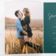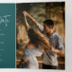 Capturez l'essence de votre histoire d'amour avec notre mariage photo personnalisé exquis Enregistrer la carte de date avec typographie de script élégante. Ce design intemporel et personnalisé est le prélude parfait à votre journée spéciale, vous permettant de partager un aperçu de votre joie avec des êtres chers. Cette sauvegarde de la date comporte une photo horizontale et un message d'accueil de script qui s'étend sur l'arrière - plan entier, en dehors de cette carte à trois plis.