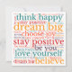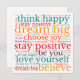 Vibes positives colorées pour envoyer quelqu'un avec ce motif WordArt dans des couleurs multicolores de rouge, jaune, orange, turquoise et violet avec les citations motivationnelles, Croyez, Choisir la joie, Penser Heureux, Rêver Gros, Rester Positif, Aimez-vous et Soyez vous, sur un arrière - plan blanc.
