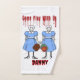 Pickleball Halloween graphic - Come Play With Us. Horror twins are reimagined as skeletons in blue dresses. The pickleball paddles they hold have designs inspired by a famous horror movie maze and rug, which in turn was inspired by an even creepier book, featuring lots of blood spatter, and the phrase "Come Play With Us." Fun pickleball Halloween horror movie towels for any pickleball addict who loves horror movies, horror books, and pickleball.