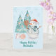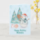 Mignonne carte de voeux de Noël aquarelle avec des Snowmen jouant au pickleball sur l'arrière - plan vert minty. Texte personnalisable