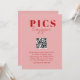 Modern blush, red bold font, wedding "Pics happen!" Card with couple's name,